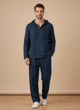Trovare il look giusto tra troppo formale e troppo trasandato è un incubo. Il taglio ampio con camicia Henley e cappuccio ti dà uno stile rilassato che funziona dall'aperitivo alla passeggiata in spiaggia.